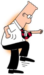 Back to Tandy I initially got it with just a floppy drive; but when hard drives came out and became less expensive, I finally broke down and ordered a 20MB internal drive for $299 I believe (yes, folks, that’s 20 megabytes – i.e. about 20 million characters of storage; today’s typical 500 gigabyte drive stores about 25,000 times as much and costs around $50 or less!) I remember it well… when I finally got that drive installed and turned on the computer and it started up from the hard drive – in about 10 seconds rather than minutes with the floppy – well, let’s just say there was some happy yelling and even a nerdy Dilbert ‘happy dance‘!